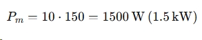Motor efficiency (η\eta) is the ratio of mechanical output power to electrical input power: